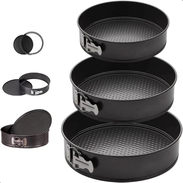 - Conteúdo do Kit: 3 formas redondas com fundo removível (24cm, 26cm, 28cm).
