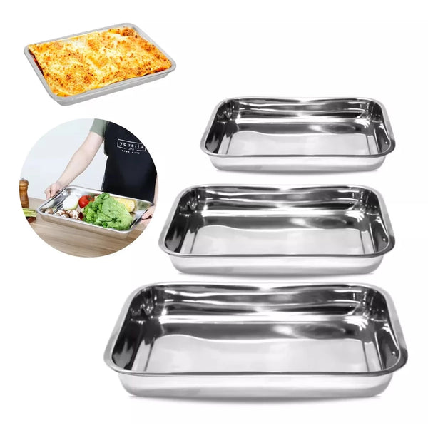 CONJUNTO 3 PEÇAS: Assadeira Retangular em Aço Inox Premium