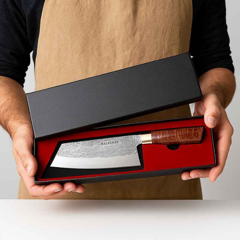 Afinal de contas, uma paixão como a sua merece uma ferramenta à altura. Olhe para a lâmina: o padrão texturizado é a prova de um trabalho manual, único e exclusivo. Em outras palavras, este cutelo artesanal é o oposto do que se encontra em qualquer loja. Ele é um símbolo de autoridade na parrilla e na cozinha. Além disso, sua embalagem premium eleva a experiência, transformando a compra em um verdadeiro ritual de "unboxing" digno de um colecionador.