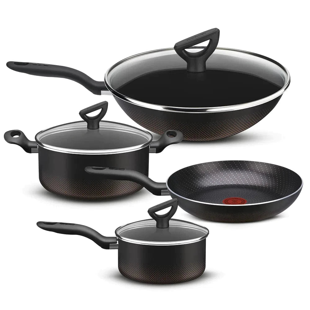 - Conteúdo do Conjunto: 1 Panela (18cm), 1 Caçarola (24cm), 1 Frigideira (25cm) e 1 Frigideira Wok (28cm).