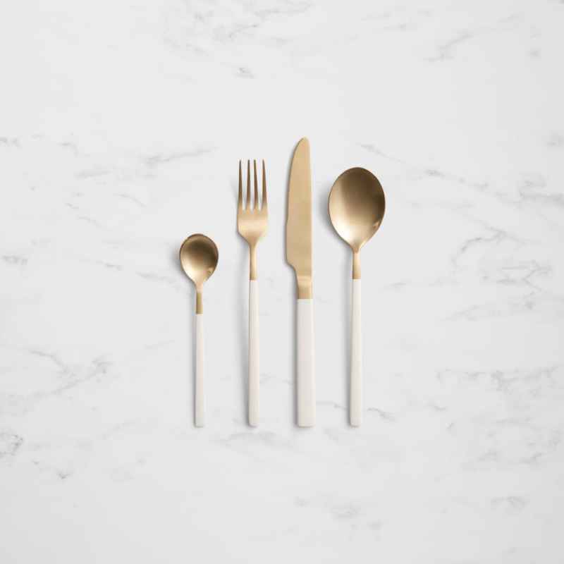Jogo de Talheres Oxford Elegance 30 Peças Aço Inox Branco Dourado