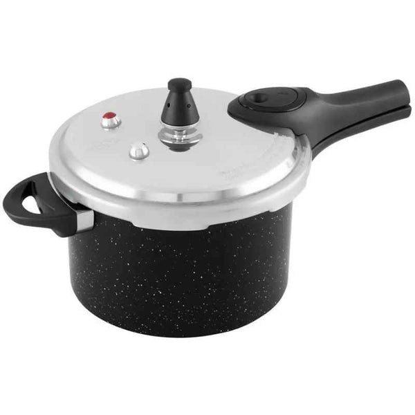 Seu sistema de fechamento externo é mais seguro e conta com 4 dispositivos de segurança: uma trava, duas válvulas de trabalho e um escape de segurança, garantindo total tranquilidade durante o uso. O acabamento externo em pintura metálica na cor preta confere um toque de modernidade, tornando-a um destaque em qualquer cozinha.