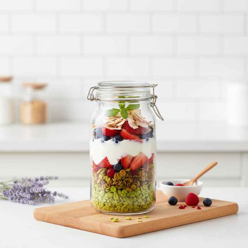Feito em vidro de alta qualidade e com tampa de aço inoxidável, este pote de vidro hermético é ideal para armazenar grãos, farinhas, líquidos e muito mais. Além de ser uma alternativa ecológica ao plástico, ele combina funcionalidade e design elegante, perfeito para cozinhas modernas e organizadas.